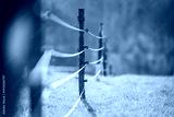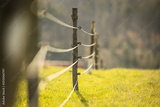 Electric fence around a pasture with animals grazing on fresh pasture grass