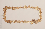 Gold (bronze) glitter empty canvas frame on beige gray paper background. Abstract copy space texture.
