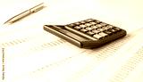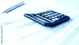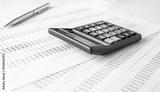 Calculator on financial statement and balance sheeet on desk of auditor. Concept of accounting and audit business.