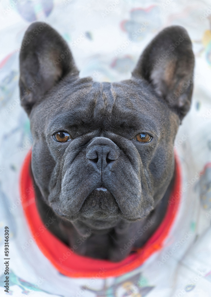 2-Years-Old Blue Lilac Male Frenchie Wearing a Cone After a Surgery