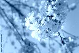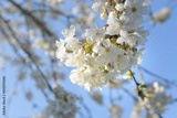 Blossoming cherry tree. Cherry branch with blooming flowers close-up against the blue sky