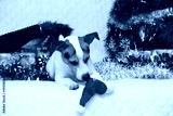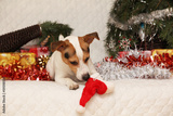 Adorable Jack russell terrier with Santa hat in a christmas