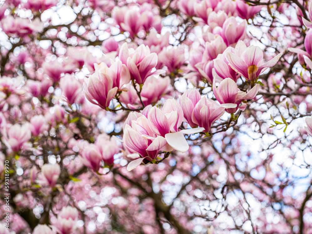 magnolia tree blooming. pink flowers