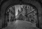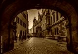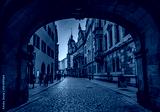 Dresden, Germany. Evening view from the street old town to the Dresden kirche, Dresden, Germany.