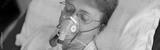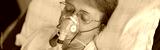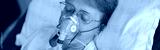 Senior patient in breathing mask lies in the ward during treatment for Covid-19. High quality photo