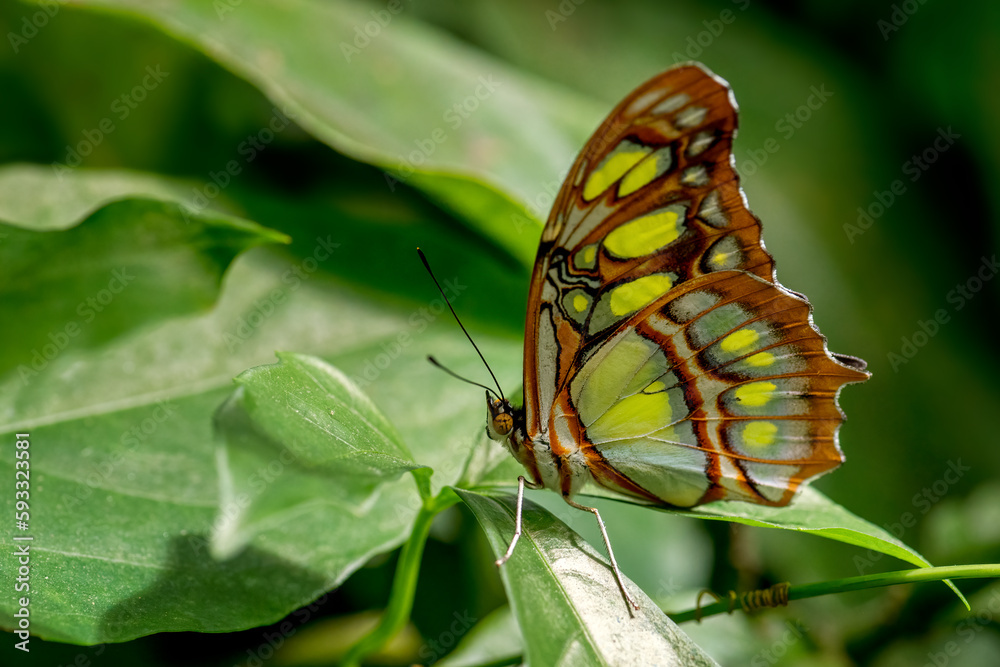 Malachite butterfly - Siproeta stelenes, beautiful malachite butterfly from New World bushes and forests, Panama.