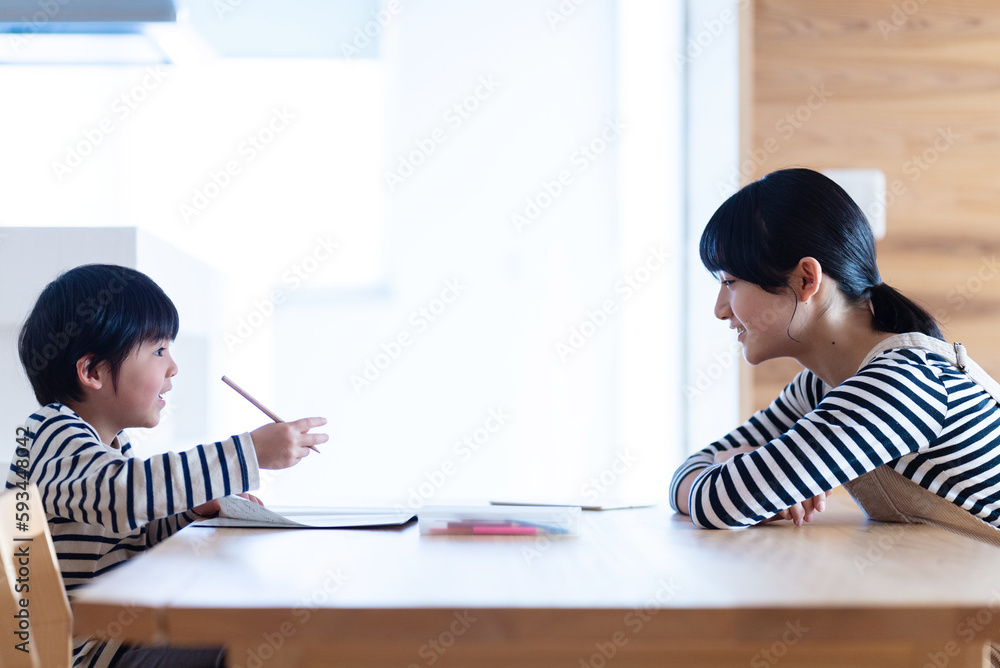 一緒に勉強する姉と弟