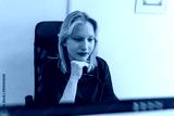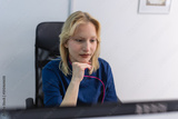 Woman doctor in uniform work with document in private clinic. Nurse sitting behind desk in office, checking medical history or anamnesis of client, reading patient treatment plan