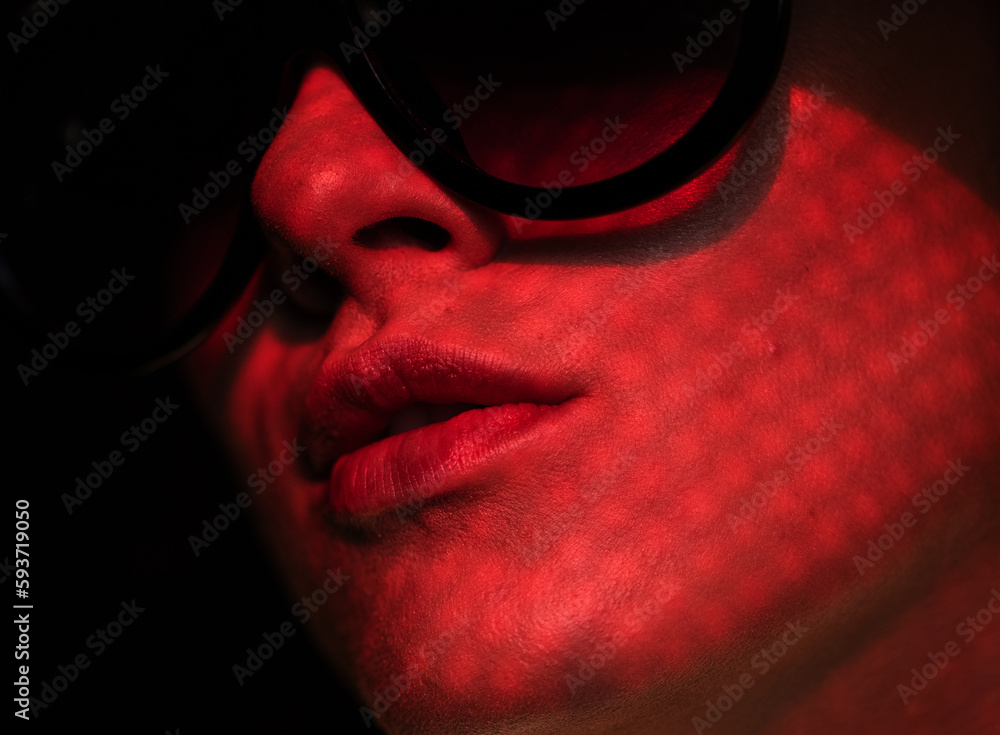 silhouette of beautiful girl in the dark. young woman with shadow on the face