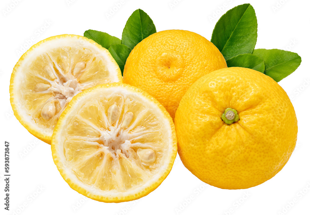 Kochi Yuzu orange isolated on white background With work path, Yellow Yuzu Orange fruit isolated on white background PNG File.