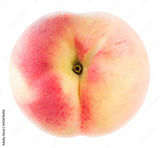 Yellow and Pink Peach fruit with leaf isolated on white background, Fresh White Peach on White PNG File.