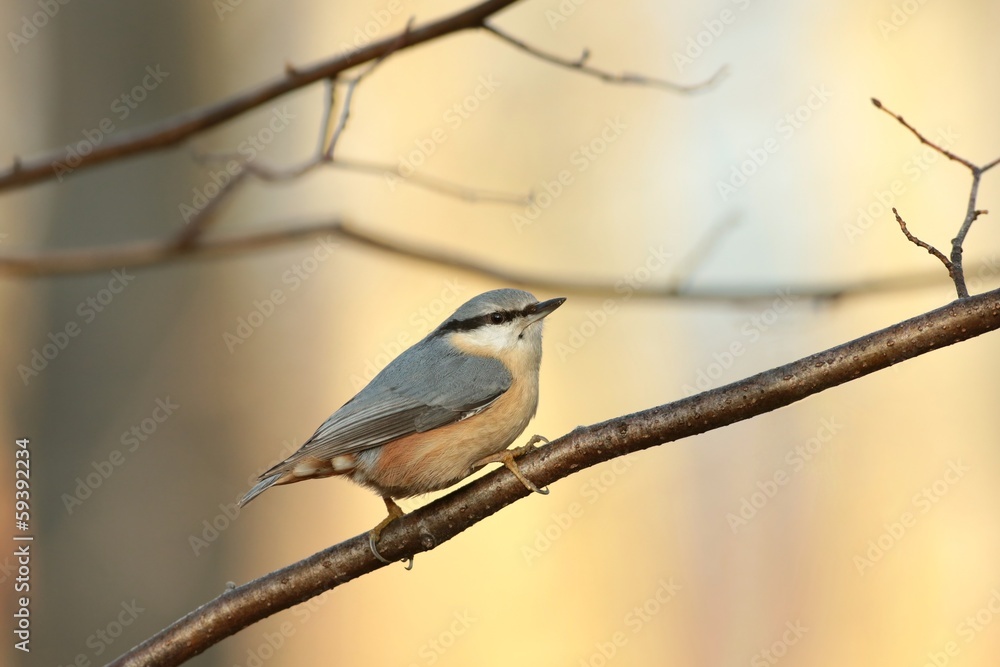 Nuthatch (Sitta europaea) on a branch on a cold morning
