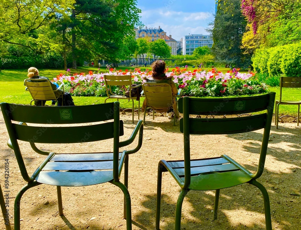 group of people sun bathing in the park during the month of April in Paris