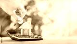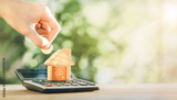 House is placed on the calculator. hand that is coin down the house. planning savings money of coins to buy a home concept for property, mortgage and real estate investment.to buy a house.