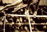 close-up body part female gymnast exercise on uneven bars in artistic gymnastics, sports summer games