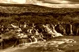 Hraunfossar is a waterfall located in western Iceland, on the Hvitá river,