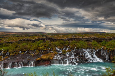 Hraunfossar is a waterfall located in western Iceland, on the Hvitá river,