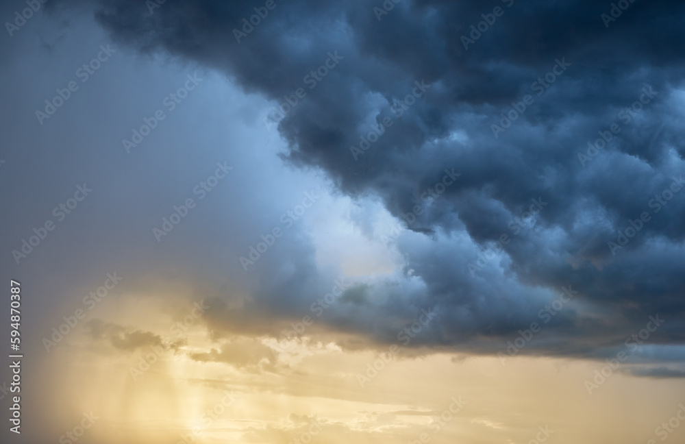 dark clouds make sky in black. Heavy rain thunderstorm. Pattern of clouds overcast predict tornado, Hurricane or thunderstorm and rainy. Dark sky cloudy have storm and lightning thunderbolt.