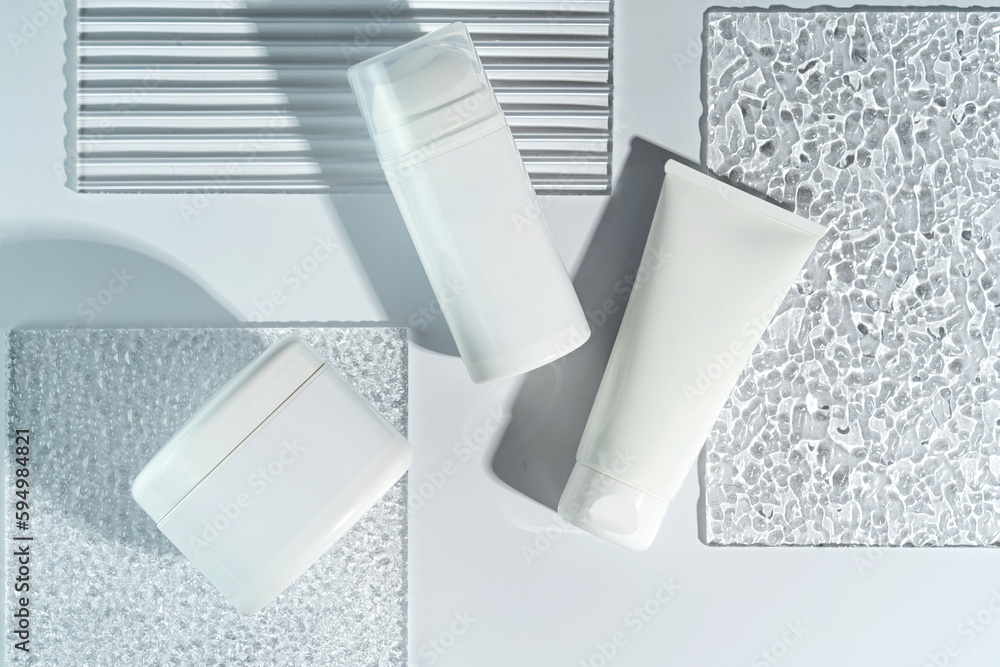 Beauty product white cream mockup. Wellness packaging. Branding spa. Cream bottle, lotion, mousse, cleanser, shampoo for skincare routine. Copy space
