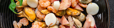 seafood cocktail food salad shrimp, mussel, scallop, octopus meal snack on the table copy space food background rustic top view