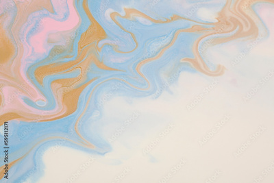 Art Abstract flow pour acrylic beige color. Wave stain blot background. Marble texture grain painting wall.
