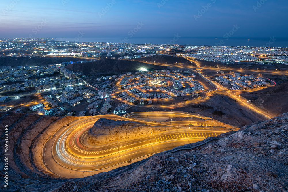 Aerial view of Muscat, Oman at night