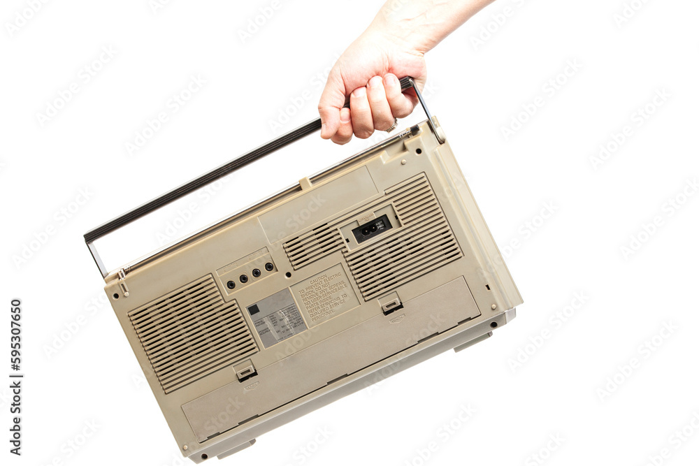 Retro ghetto radio boom box cassette recorder from 80s. in hand.