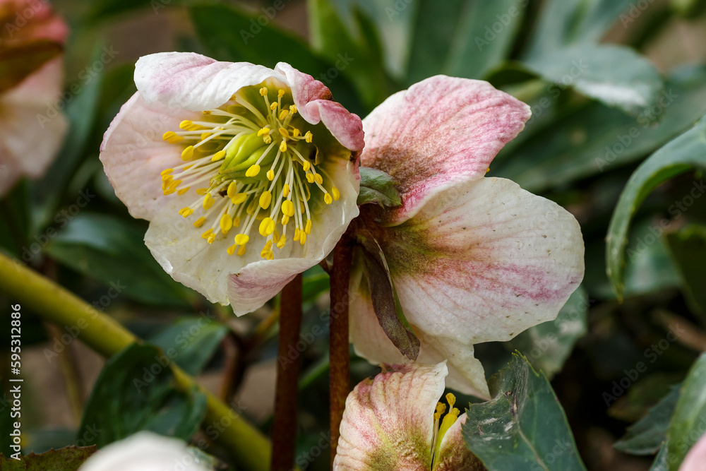 Lenten Rose or Helleborus orientalis flowered blossoms in the garden in spring