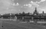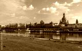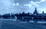 Spring architecture panorama of the Old Town with Elbe river in Dresden, Saxony, Germany.