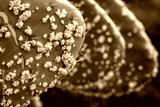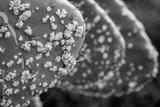 Waxy white clusters of Cochineal insects nymphs, a scale insect which produces carmine dye used as red colorant in food and cosmetics, highlighting the process of harvesting blood-like carminic acid.