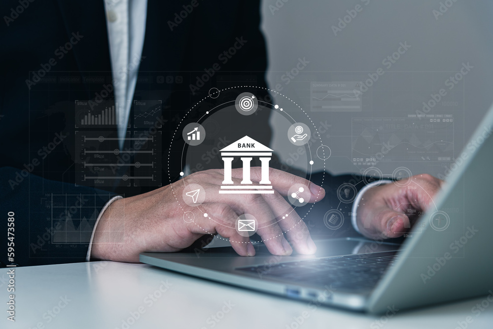 Financial banking ecosystem concept, money planning management, target to success, interest rate, income and return, investment fund, dividend tax, retirement, revenue growth, chart, graph, database.