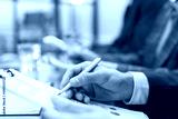 Business adviser analyzing financial figures denoting the progress in the work of the company.