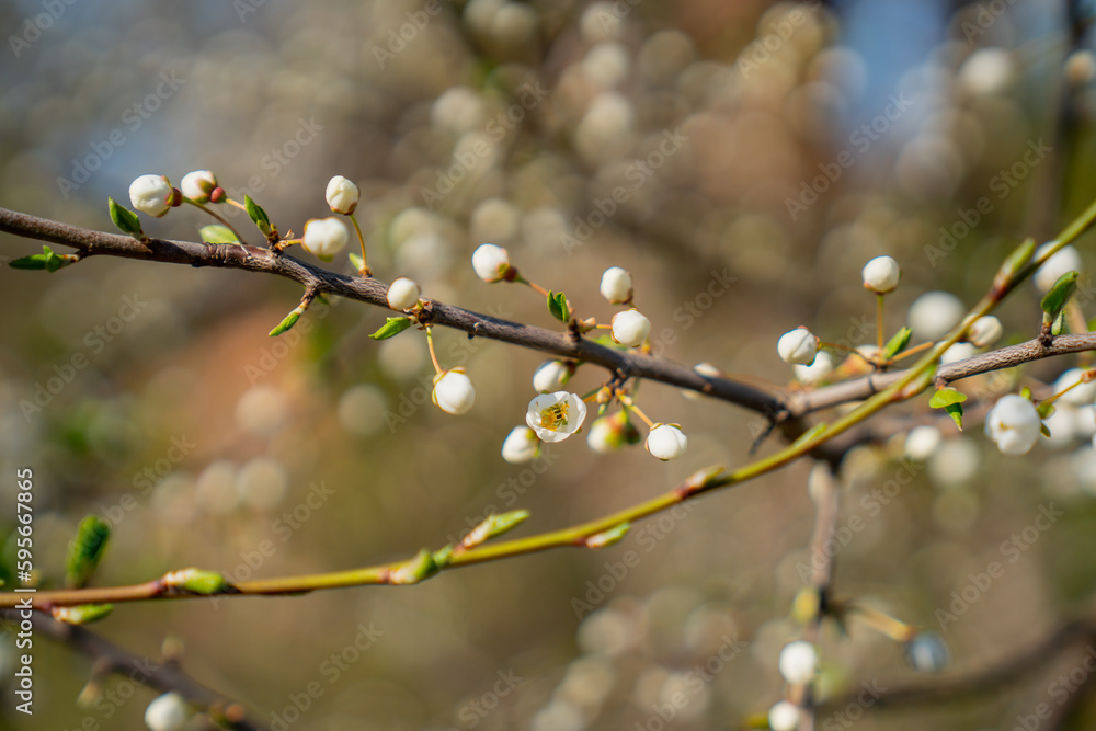 The buds of the apple tree budding during sunny spring day