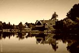 Golcuk National Park Bolu Turkey. Autumn wooden Lake house inside forest in Bolu Golcuk National Park, Turkey wallpaper