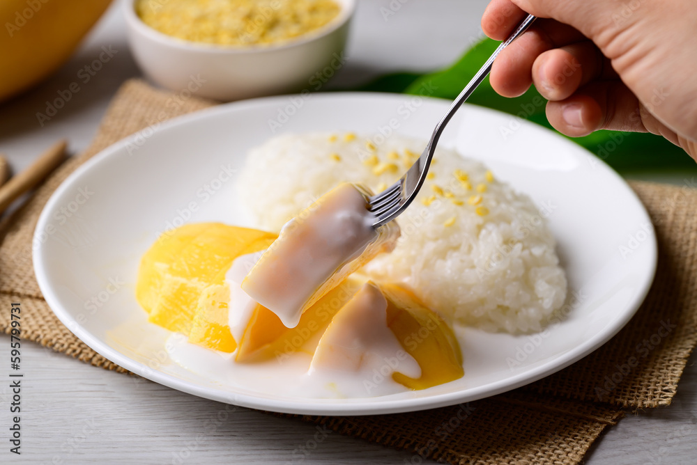 Mango sticky rice, Thai dessert (Khao Niew Mamuang)