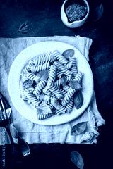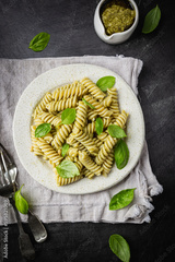 Fussili pasta with basil pesto