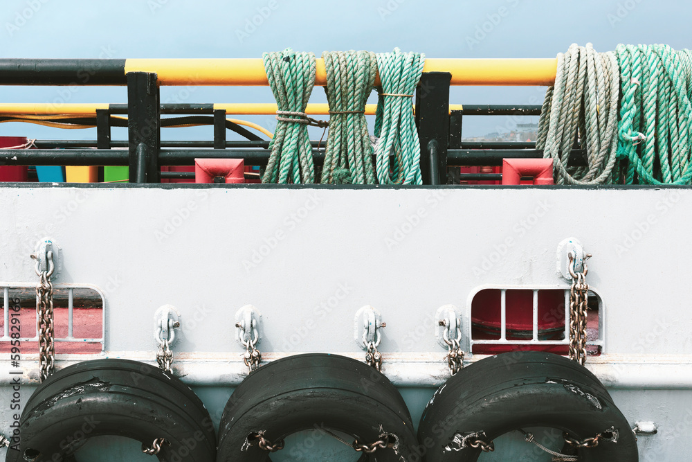 Detail of boat, sky on background
