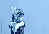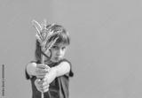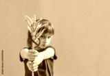 Banner for International day of celiac disease. Child holding crossed sprinklers. No wheat concept.