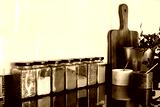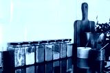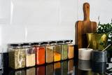 Various dried spices in glass jars