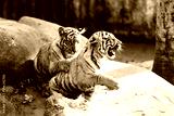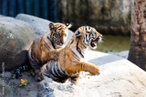 Sumatran tiger (Panthera tigris sumatrae) kitten, rare tiger subspecies that inhabits the Indonesian island of Sumatra