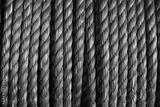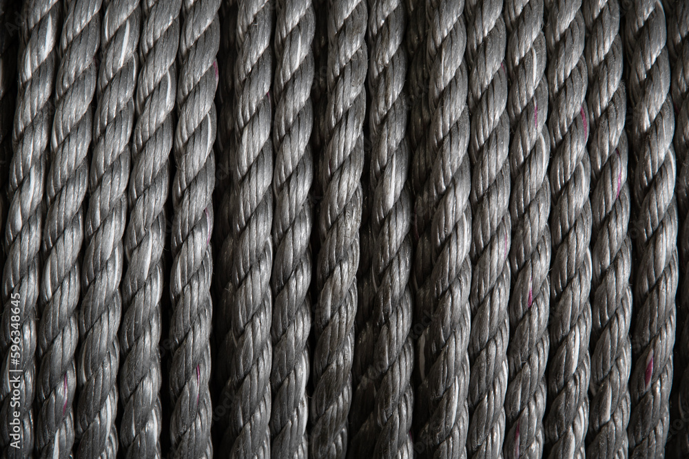 Roll of steel cable. Ready-to-use building material. Close-up of a stainless steel rope.