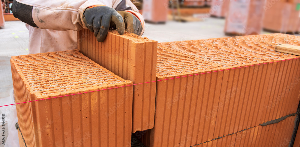 bricklayer at work at new house in construction