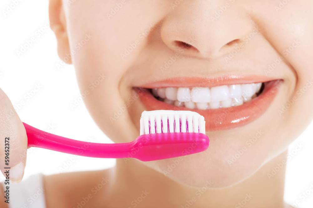 Young beautiful woman with toothbrush and paste.