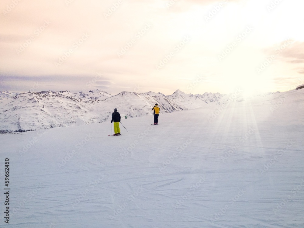 sciatori al tramonto
