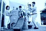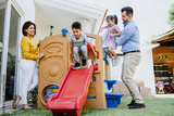 Latin family Father, Mother and children Son and daughter playing at House Backyard in Mexico, hispanic people in Latin America