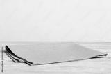top view with green kitchen napkin isolated on table background. Folded cloth for mockup with copy space, Flat lay. Minimal style