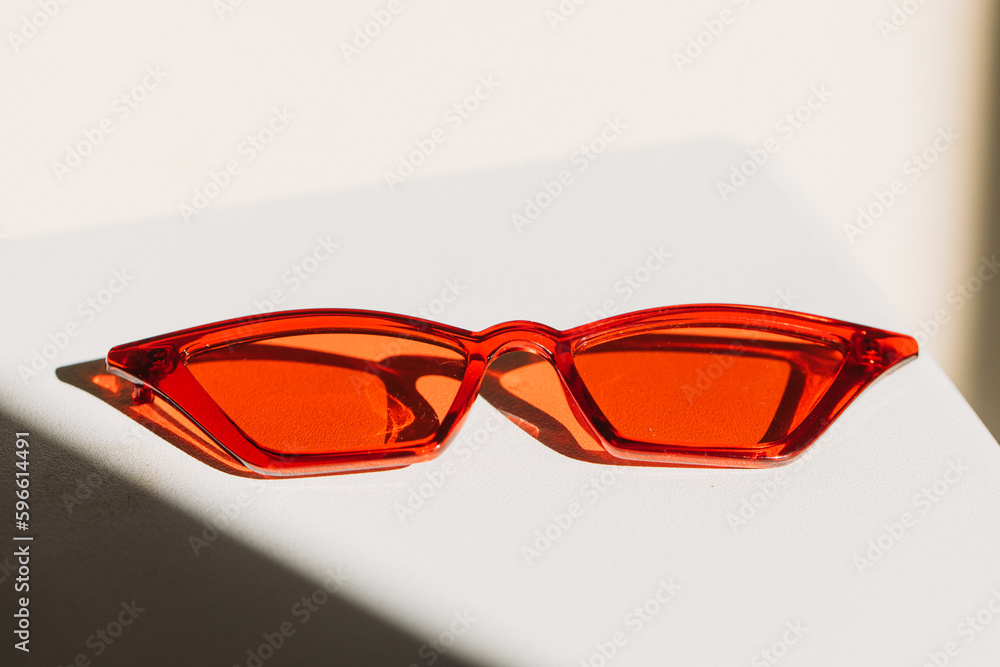 red glasses on a white background