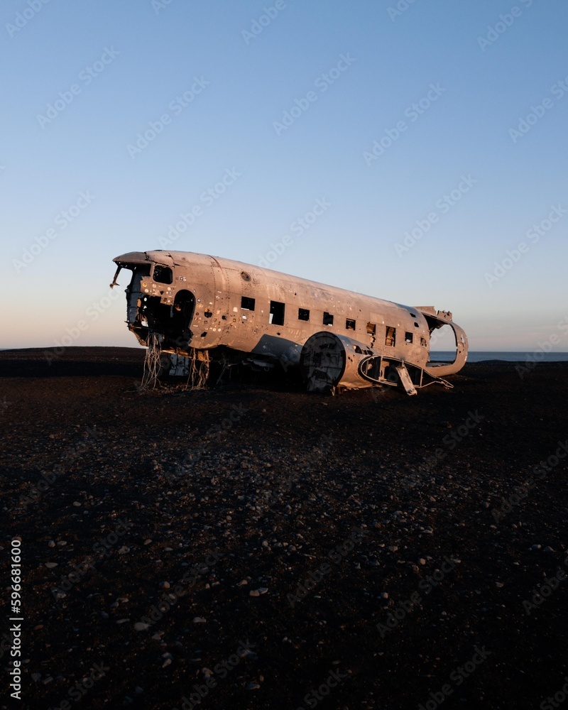 Solheimasandur Plane Wreck on Iceland Black Sand Beach. High quality photo