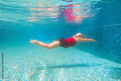 Pregnant woman in swimming pool. Healthy pregnancy