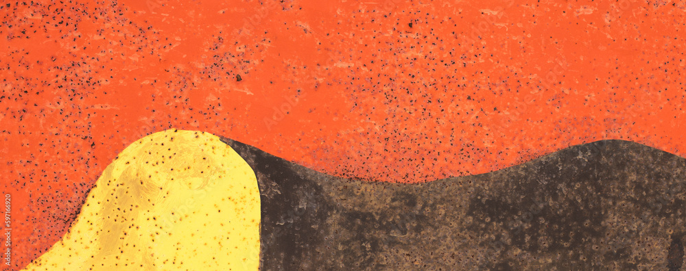 Color rusty abstract painted metal background. Yellow black and orange texture of old plate